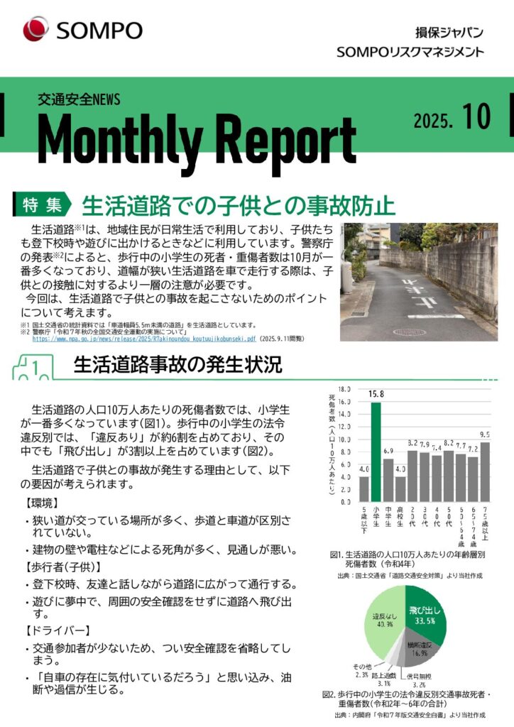 交通安全ニュース10月号「生活道路での子供との事故防止」をお届けします
