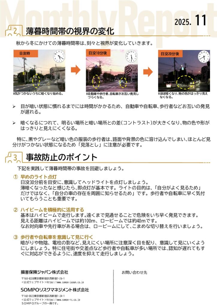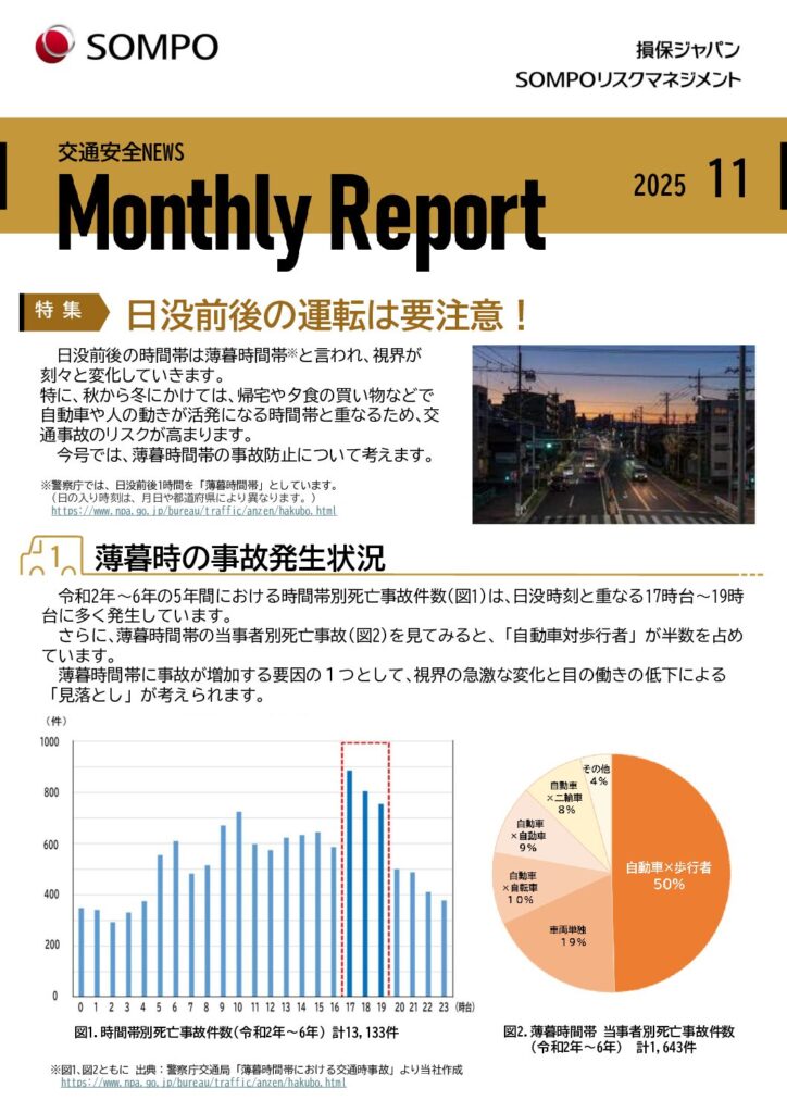 交通安全ニュース11月号「日没前後の運転は要注意!」をお届けします