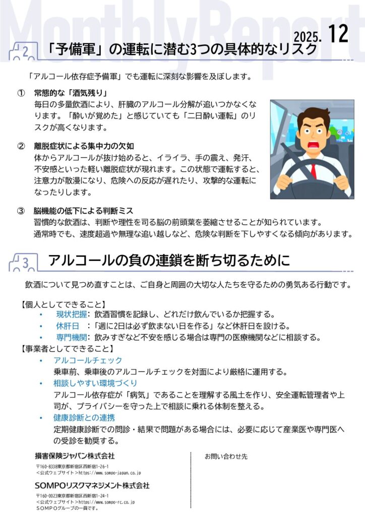 交通安全ニュース12月号「アルコール依存症予備軍と運転リスク」をお届けします!